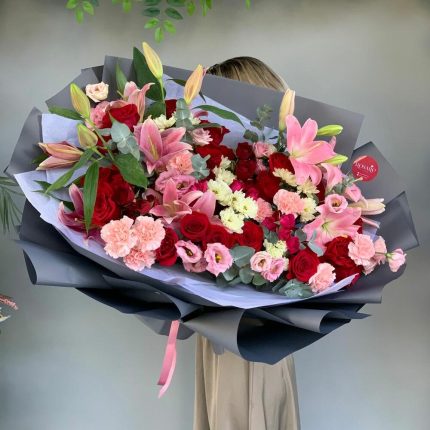 С чистого листа – Композиция с лилиями, пионовидными розами и пионами
