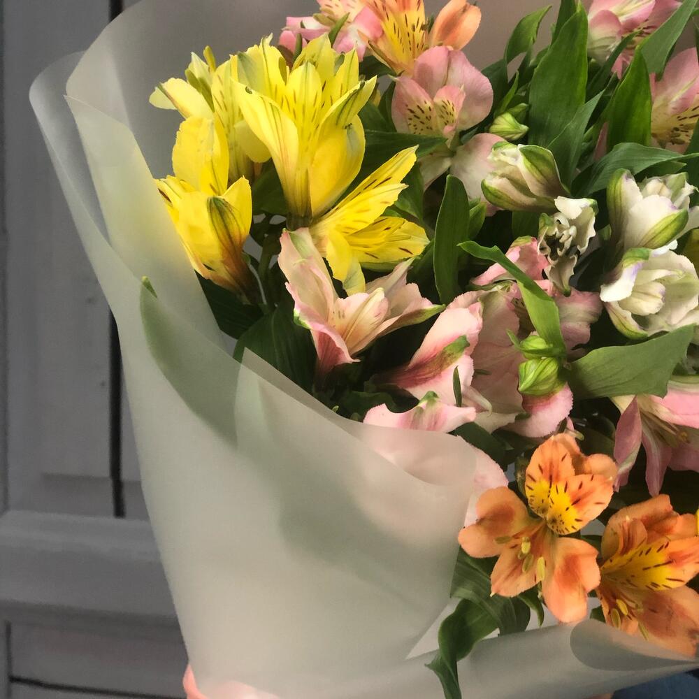 Альстромерия – 11 шт.Упаковка дизайнерская – 2 шт.Лента атласная – 1 шт.