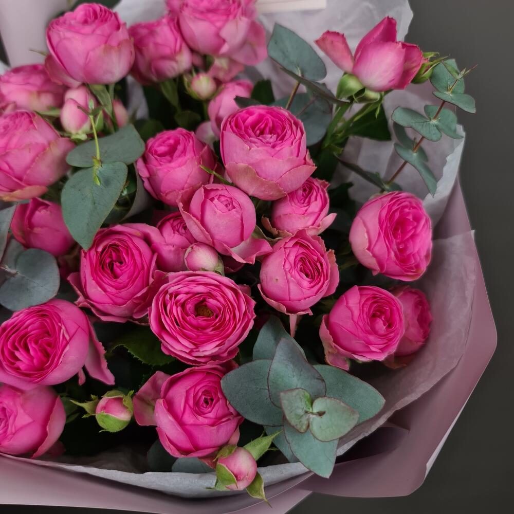 жизель кустовая – 5 шт.Эвкалипт – 5 шт.Дизайнерская упаковка – 1 шт.Лента атласная – 1 шт.