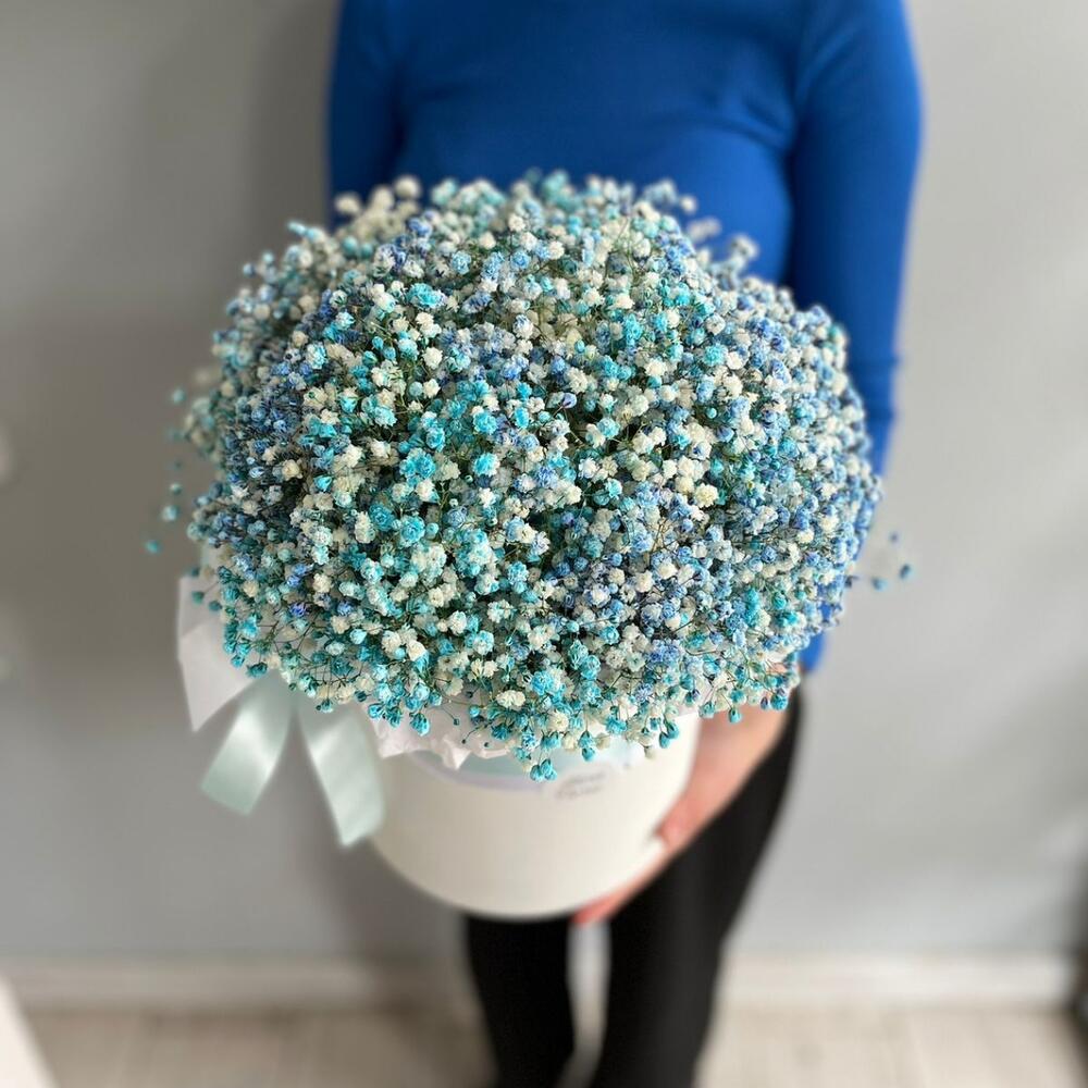 Большая коробка гипсофилы в бирюзово-голубой гамме