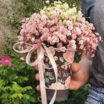 “Сиреневый туман” – композиция из гипсофилы в шляпной коробке