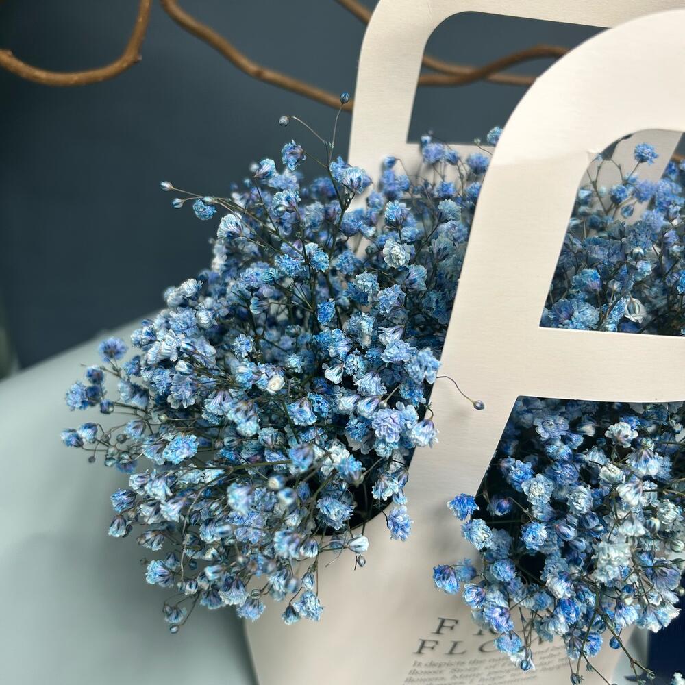 Голубая гипсофила в крафтовой сумке