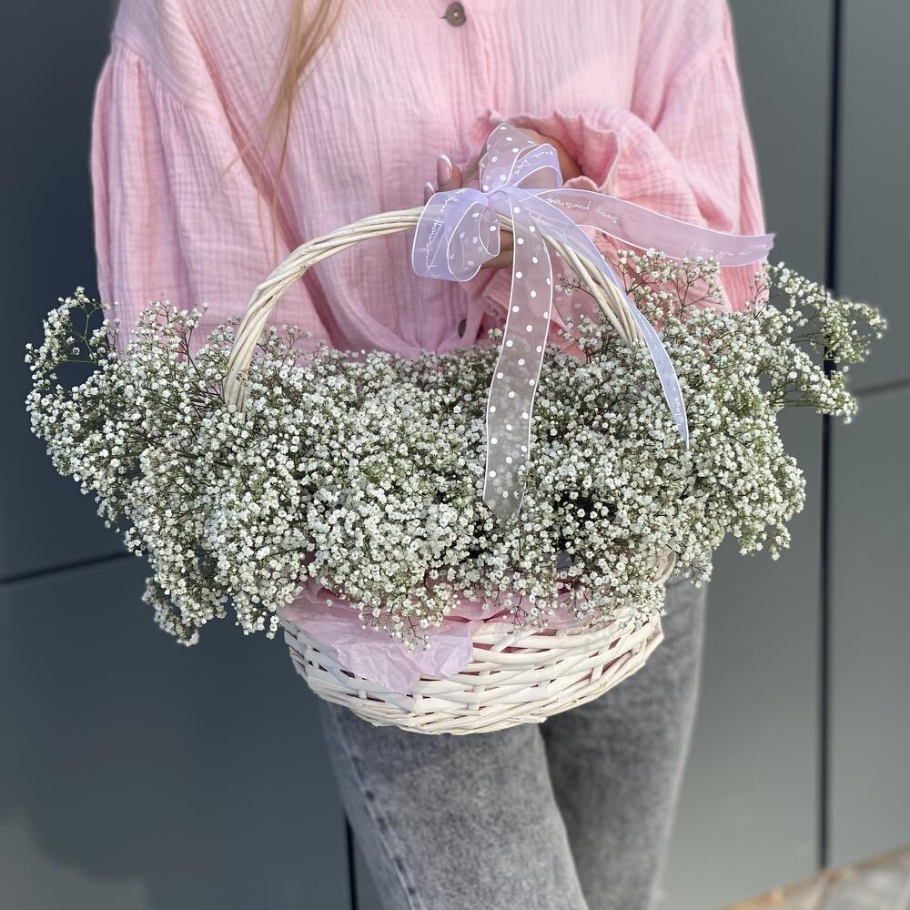 Корзина Суфле из белой гипсофилы