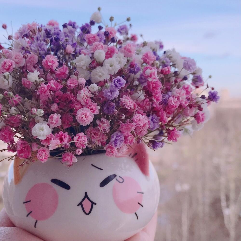 Керамическое кашпо – 1 шт.Флористическая губка – 1 шт.инструкция по уходу за цветами – 1 шт.гипсофила радужная – 3 шт.