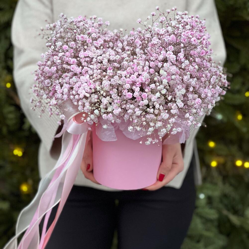 Нежная, розовая гипсофила в коробке