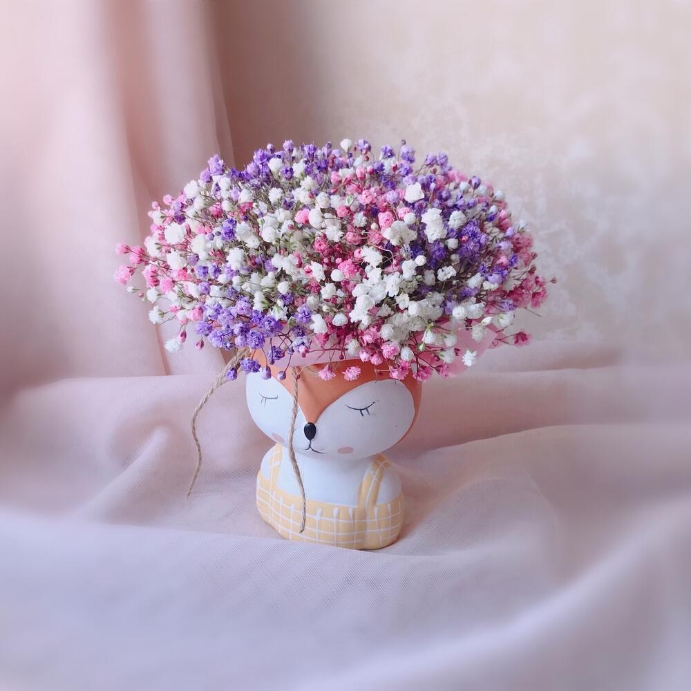 Радужная гипсофила в кашпо из керамики «Лисичка»