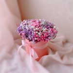 “Сиреневый туман” – композиция из гипсофилы в шляпной коробке