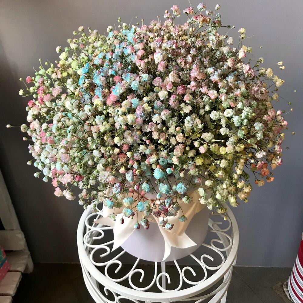 гипсофила радужная – 21 шт.Шляпная коробка – 1 шт.