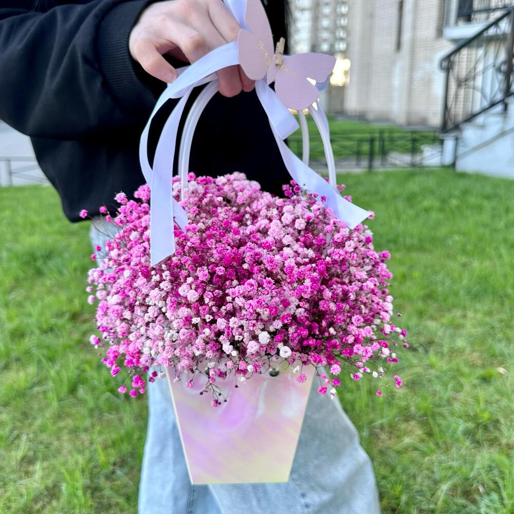 Розовая гипсофила в милой сумочке
