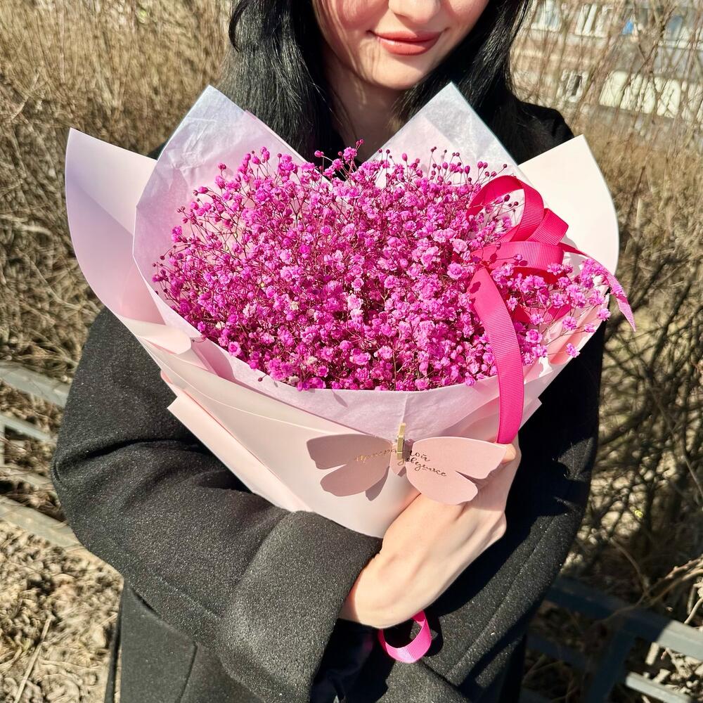 Розовый букет из гипсофилы «Принцесса»