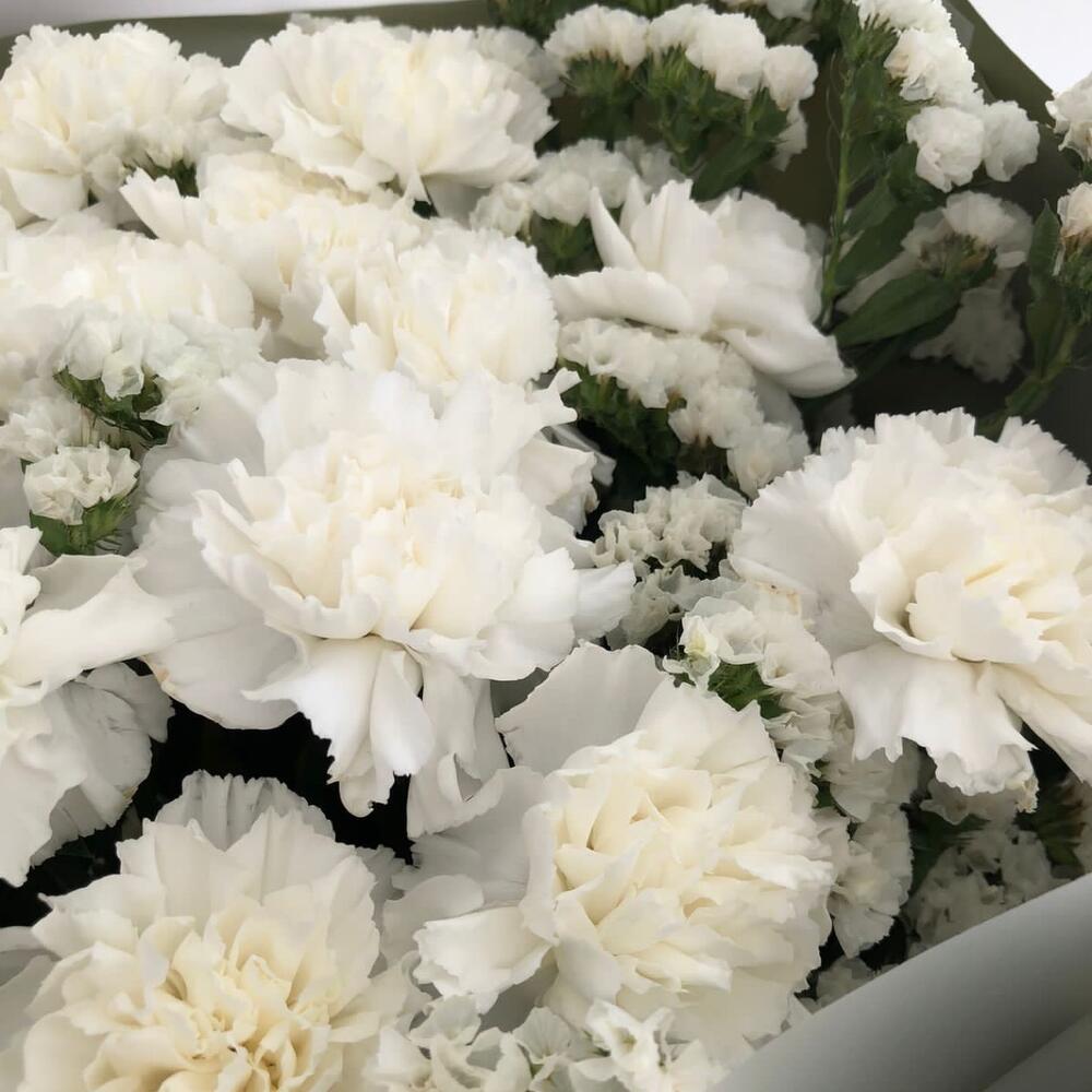 Букет из белых диантусов и статицы