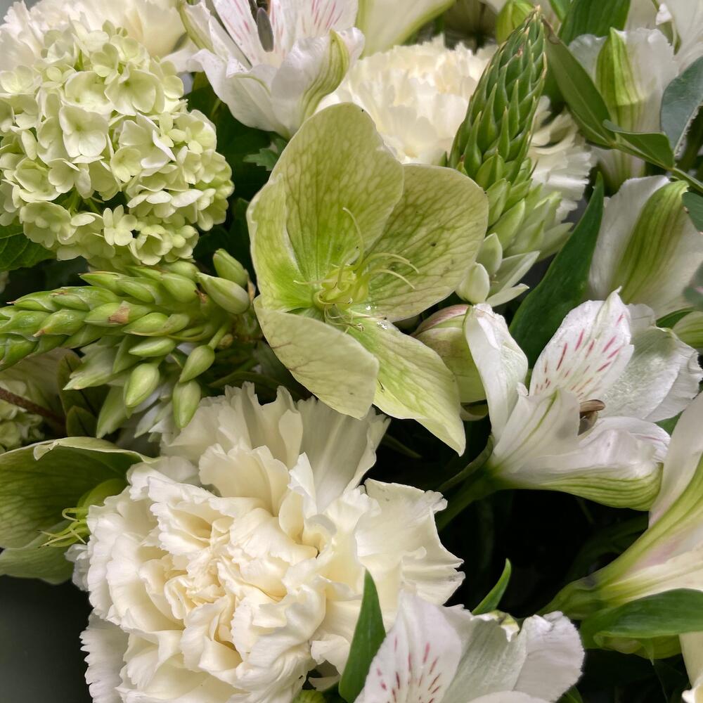 Альстромерии, Гвоздики, Кустовые розы, Лизиантусы, Розы, Хризантемы