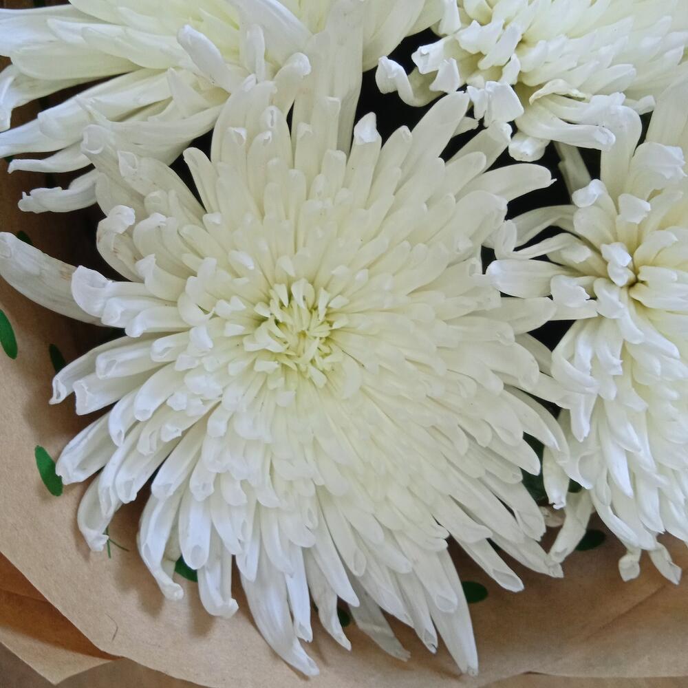 Хризантема одноголовая – 9 шт.Упаковка крафт – 1 шт.Лента – 1 шт.