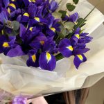 Ирис – 15 шт.Эвкалипт – 2 шт.Лента атласная – 1 шт.Упаковка дизайнерская – 2 шт.