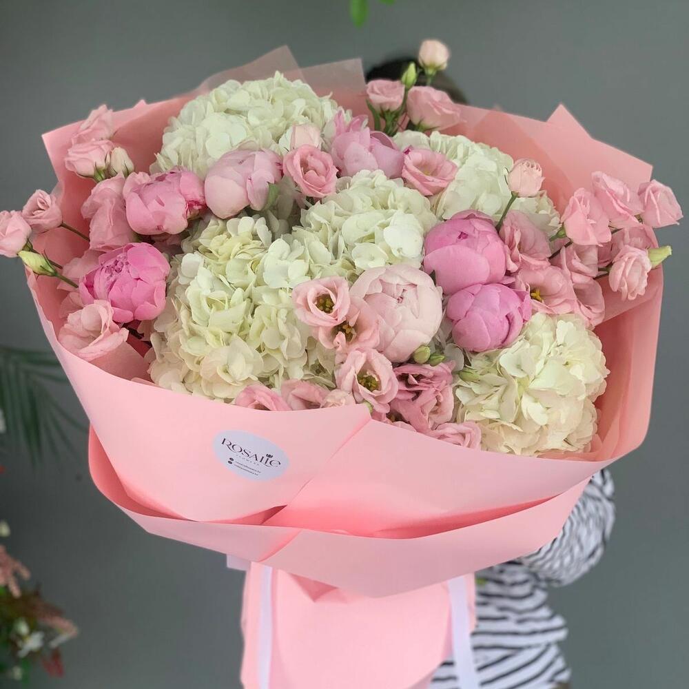 Гвоздики, Кустовые розы, Лизиантусы, Пионовидные розы, Розы