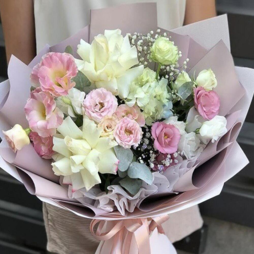 Гвоздики, Кустовые розы, Лизиантусы, Пионовидные розы, Розы