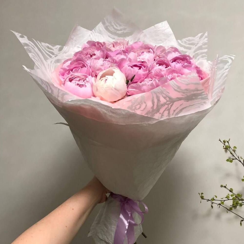 19 розовых пионов в упаковке