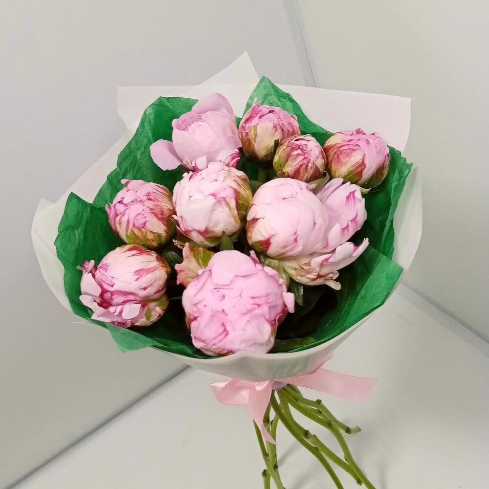 пионы сара бернар – 9 шт.Дизайнерская упаковка – 1 шт.