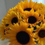 Подсолнух – 13 шт.Коробка шляпная – 1 шт.Лента атласная – 2 шт.Открыточка с вашими пожеланиями – 1 шт.хорошее настроение – 100 шт.инструкция по уходу за цветами – 1 шт.Кризал – 1 шт.
