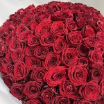 Роза красная – 101 шт.Дизайнерская упаковка – 7 шт.Атласная лента – 1 шт.