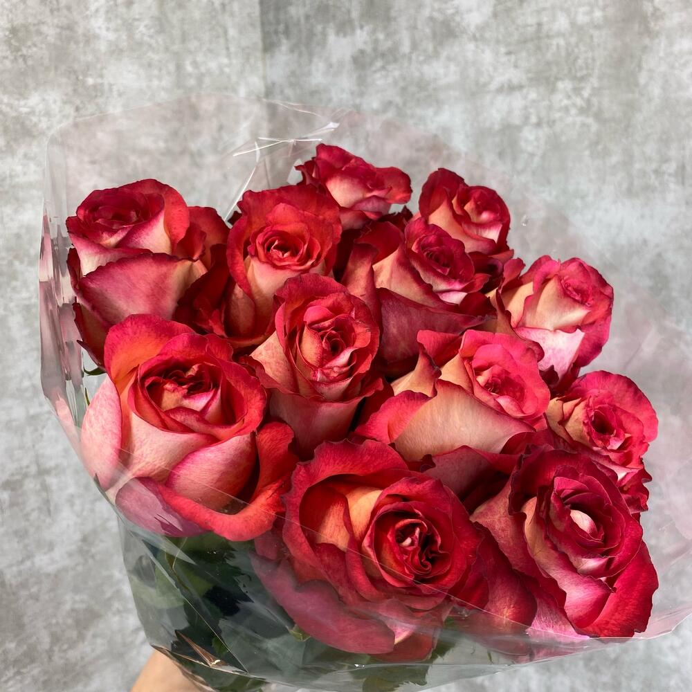 Роза Эквадор – 11 шт.Прозрачная упаковка – 1 шт.Атласная лента – 1 шт.