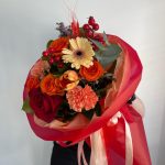 Авторский букет с розами и герберой