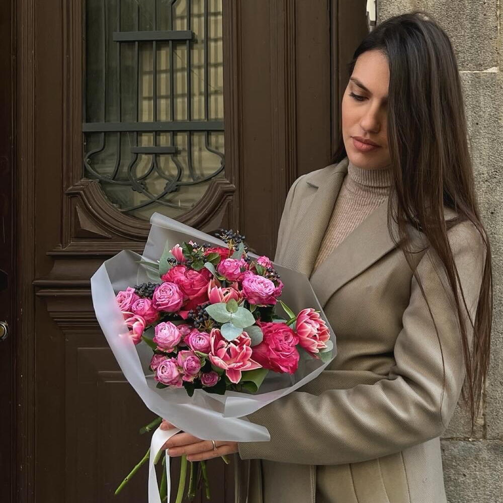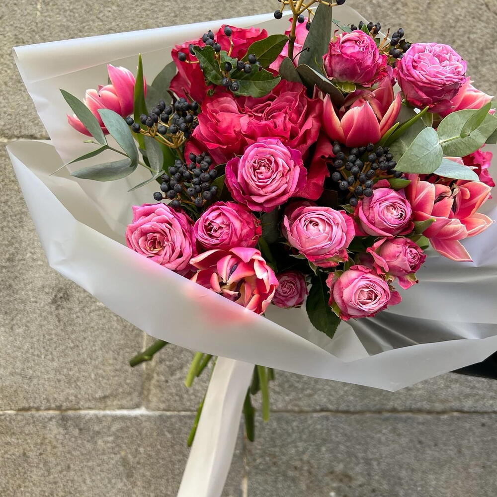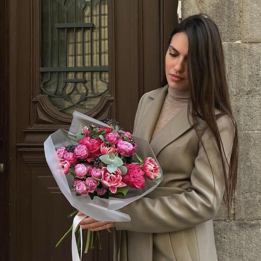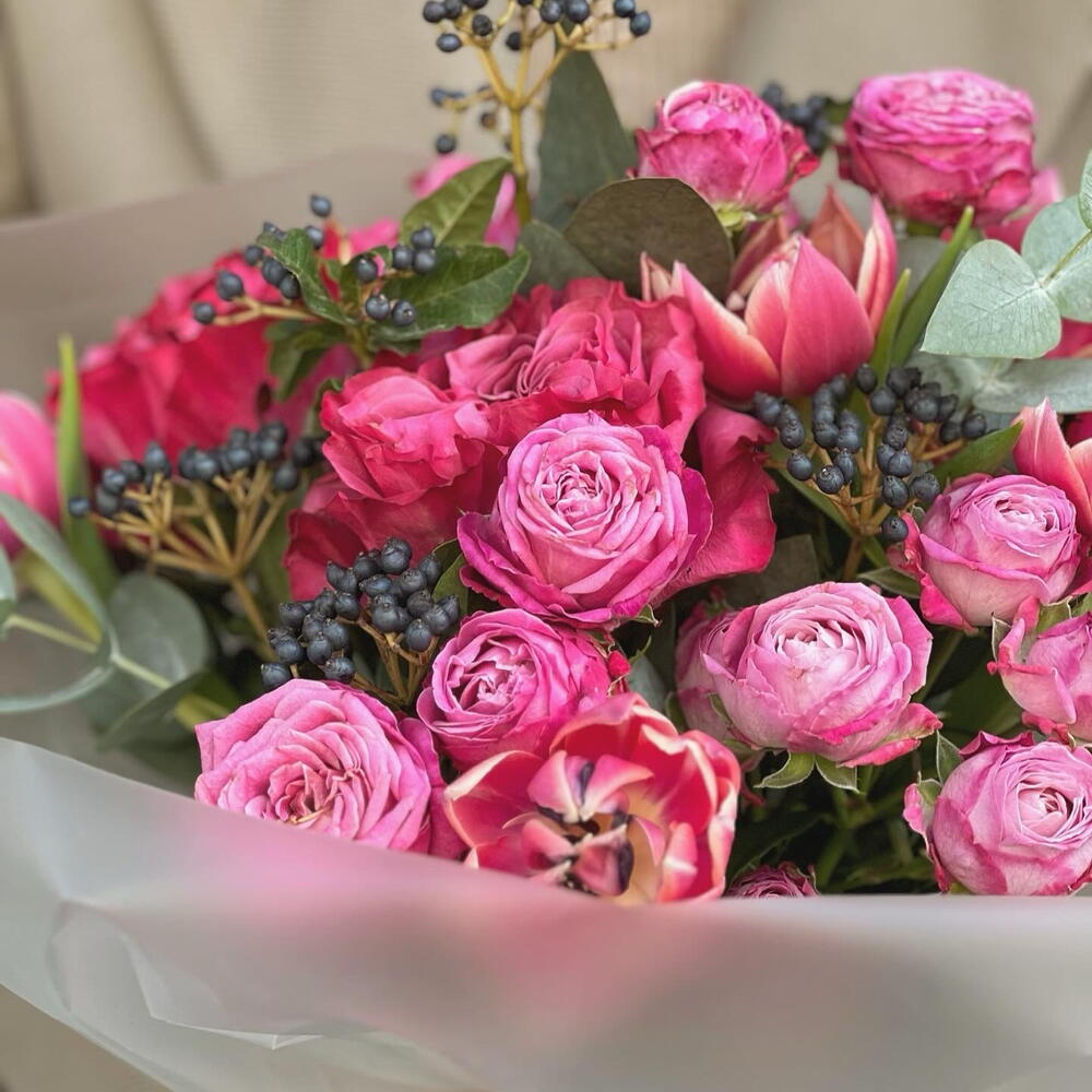 Гвоздики, Кустовые розы, Лизиантусы, Пионовидные розы, Розы