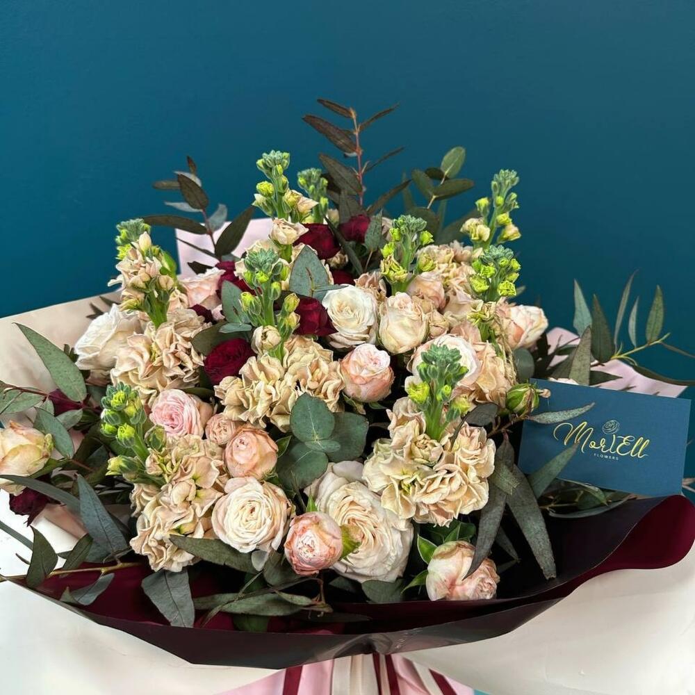 Гвоздики, Кустовые розы, Лизиантусы, Пионовидные розы, Розы