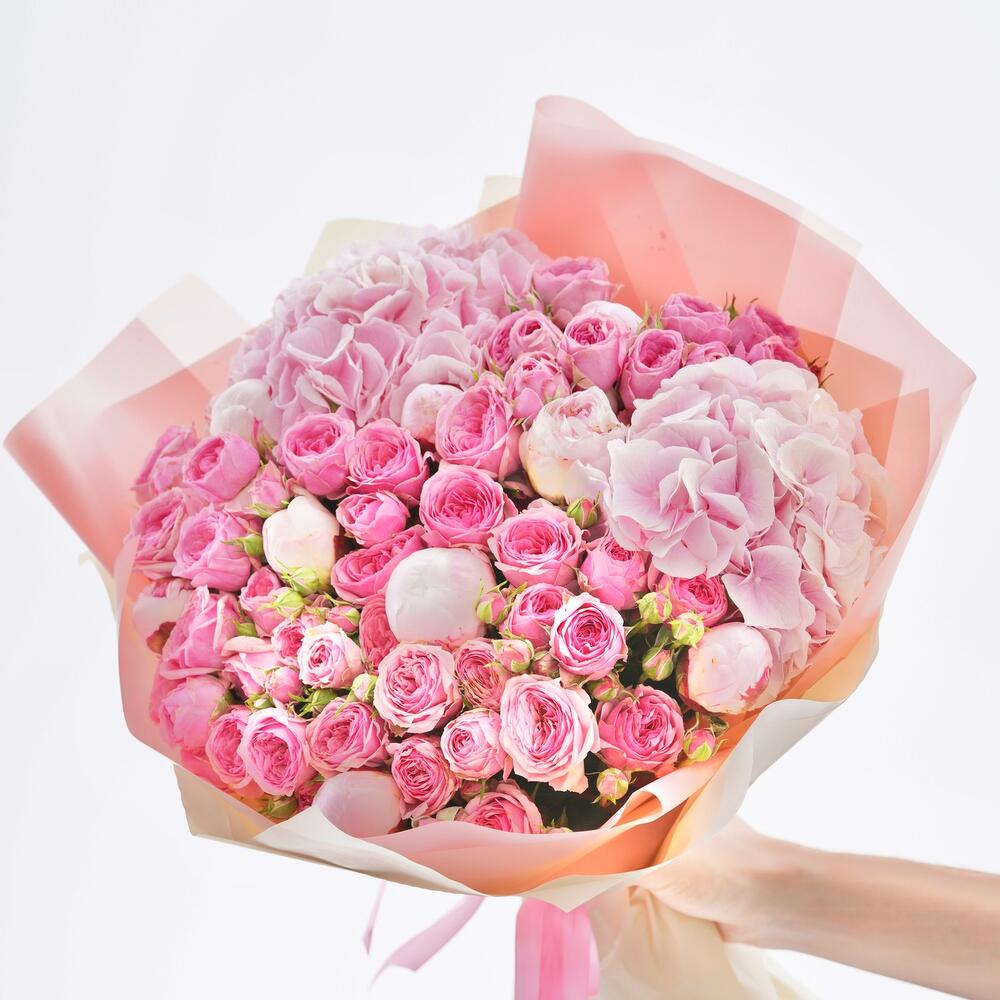 Категории: Гортензии, Кустовые розы, Пионовидные розы, Розы