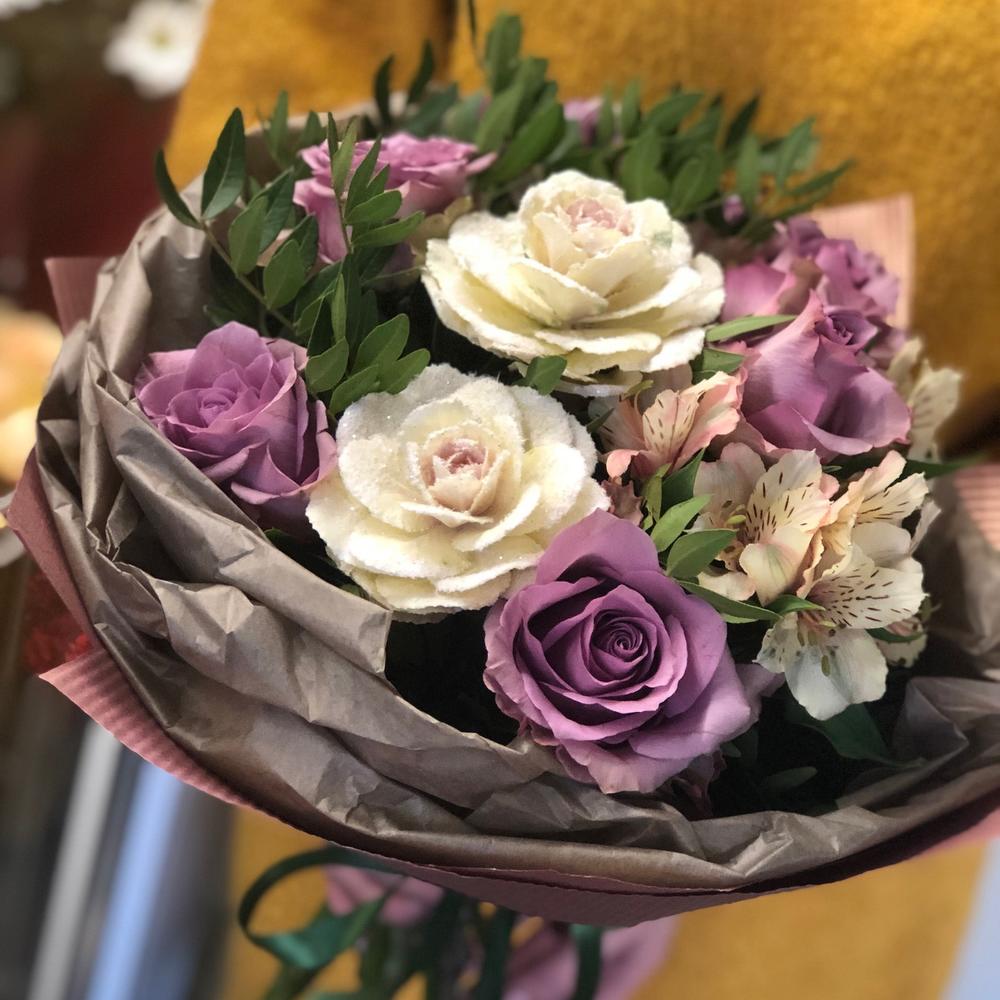 Цвет можно обсудить с флористом в переписке.
