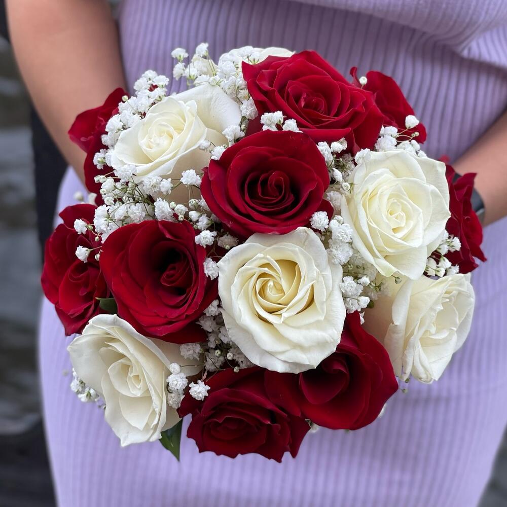 Букет невесты с красными и белыми розами