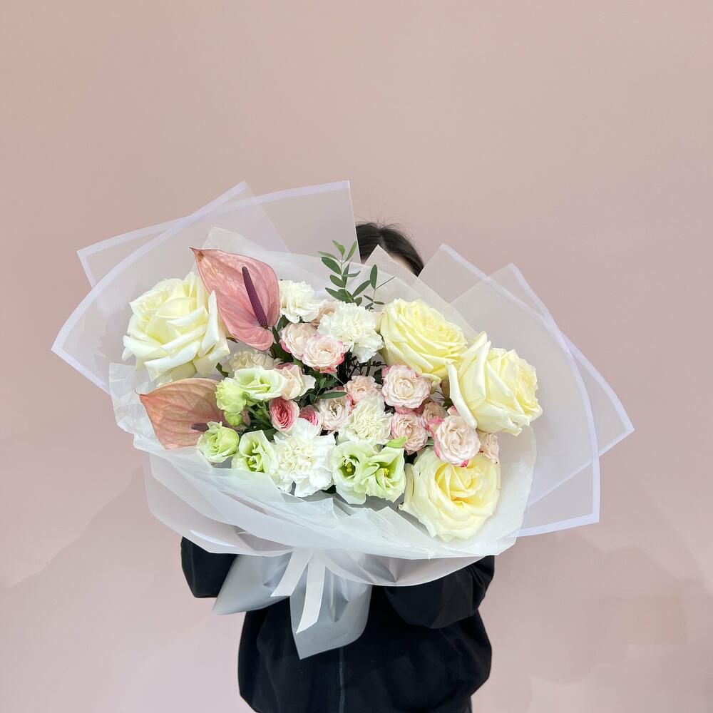 Гвоздики, Лизиантусы, Розы