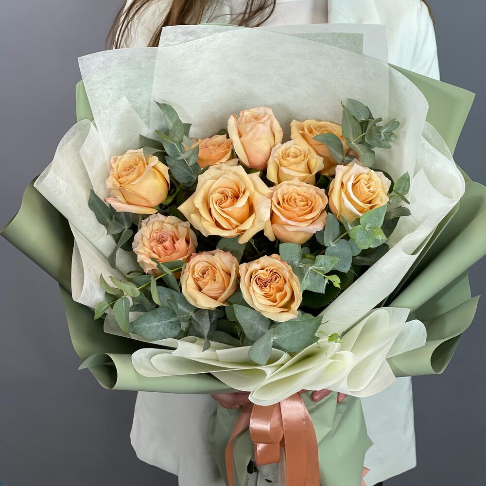 Букет с персиковой розой Фисташковый пломбир