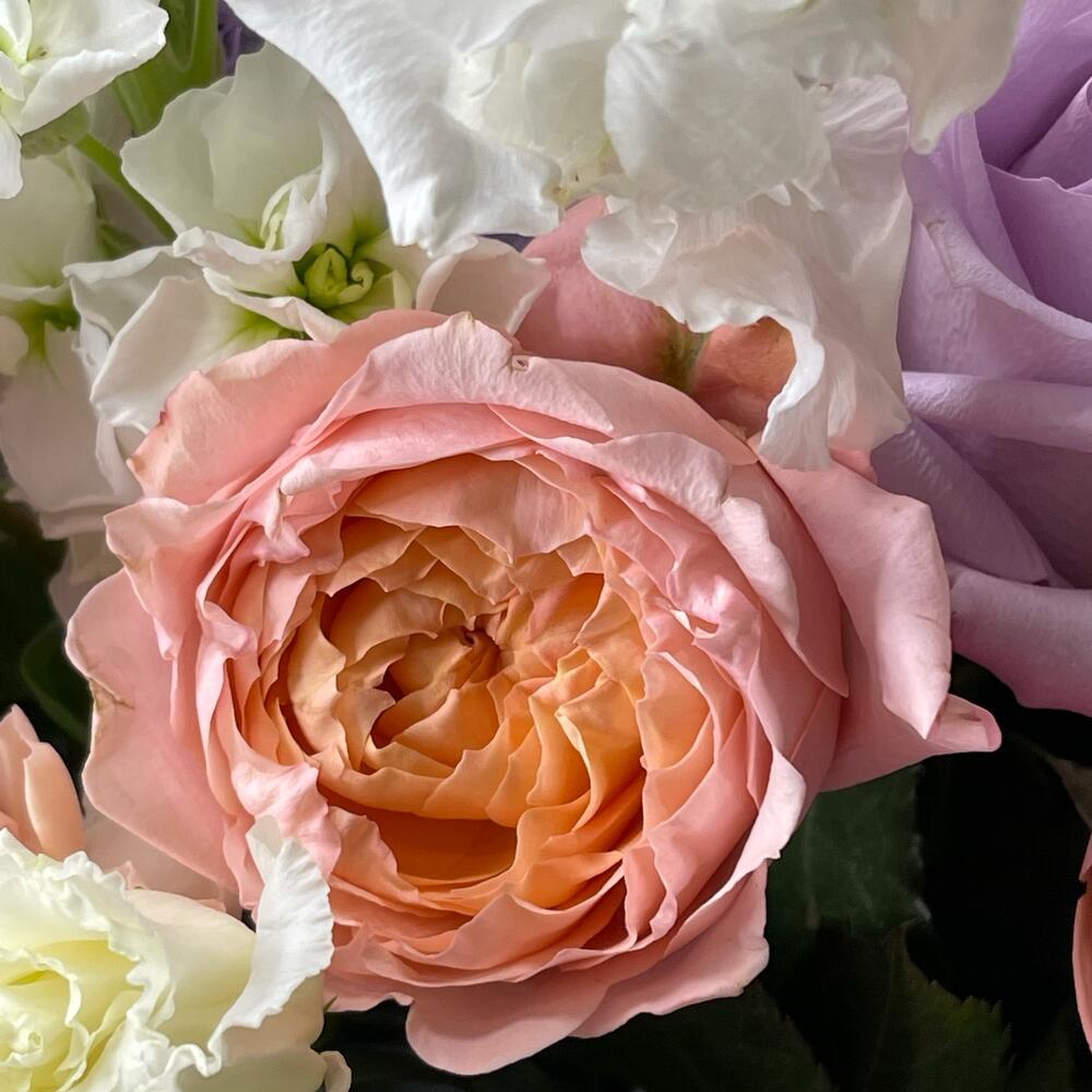 Букет с пионовидной кустовой розой и сиренью «Садовый»