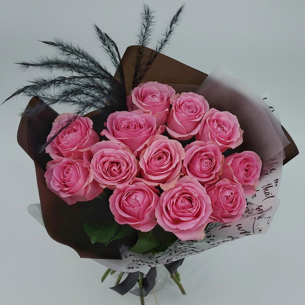 Роза Эквадор – 13 шт.Упаковка дизайнерская – 1 шт.ковыль крашеный – 1 шт.