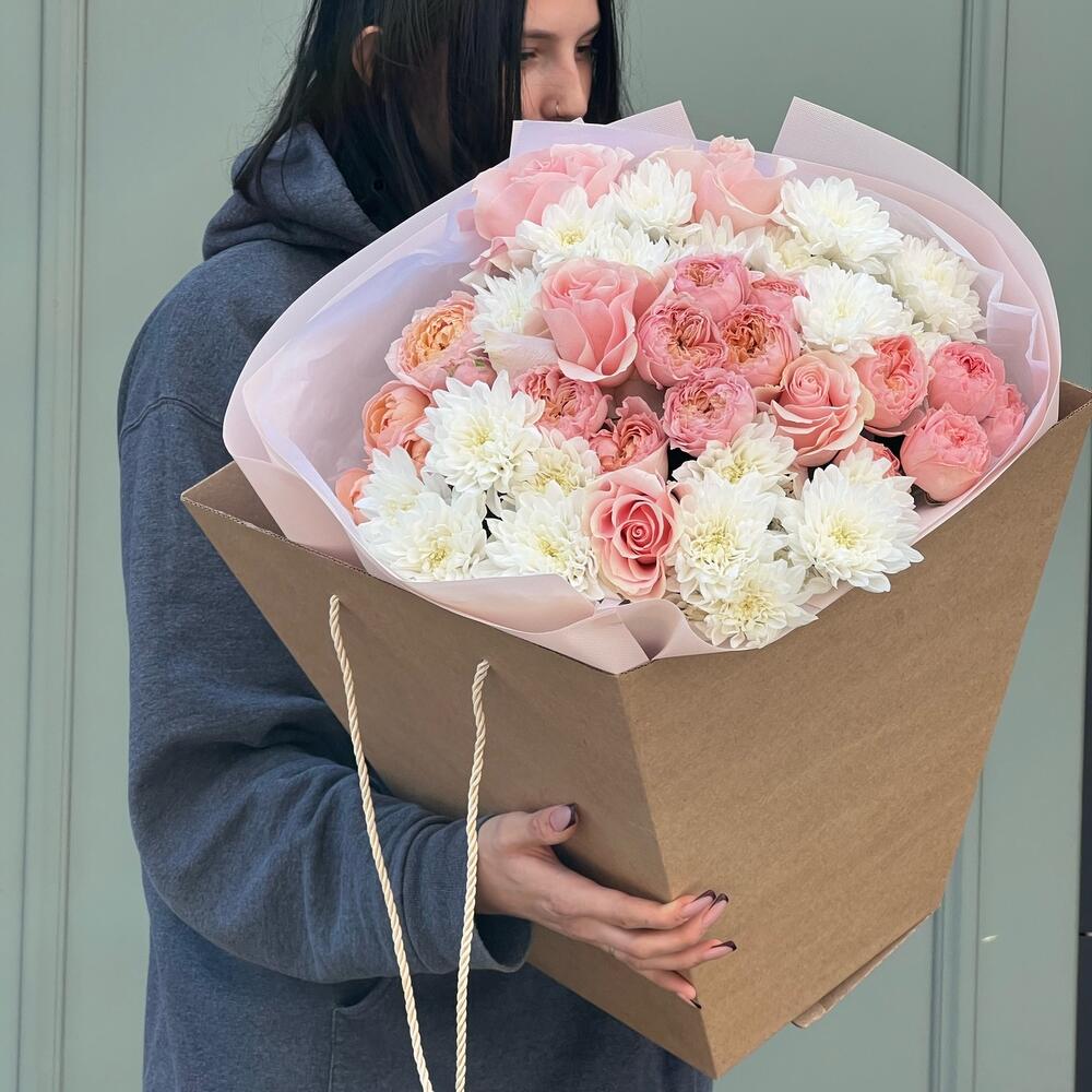 Гвоздики, Кустовые розы, Пионовидные розы, Розы