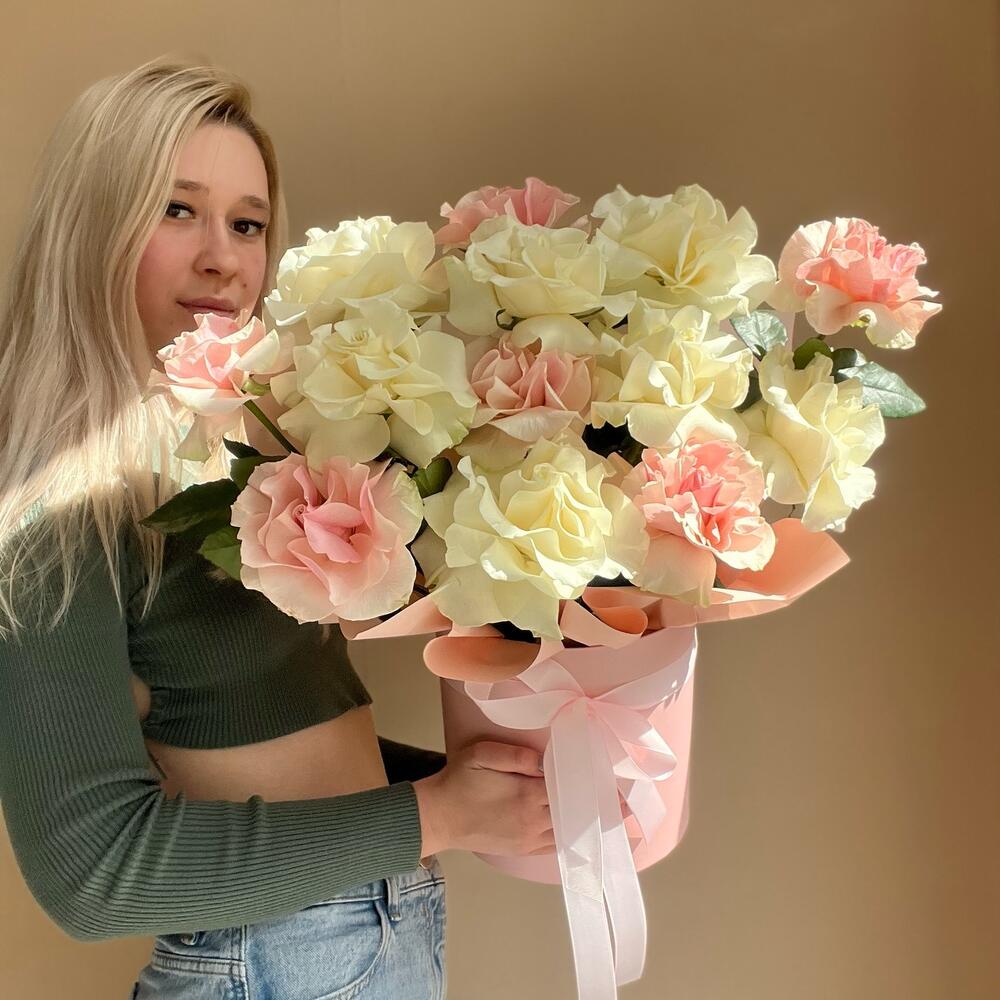 Гвоздики, Кустовые розы, Пионовидные розы, Розы