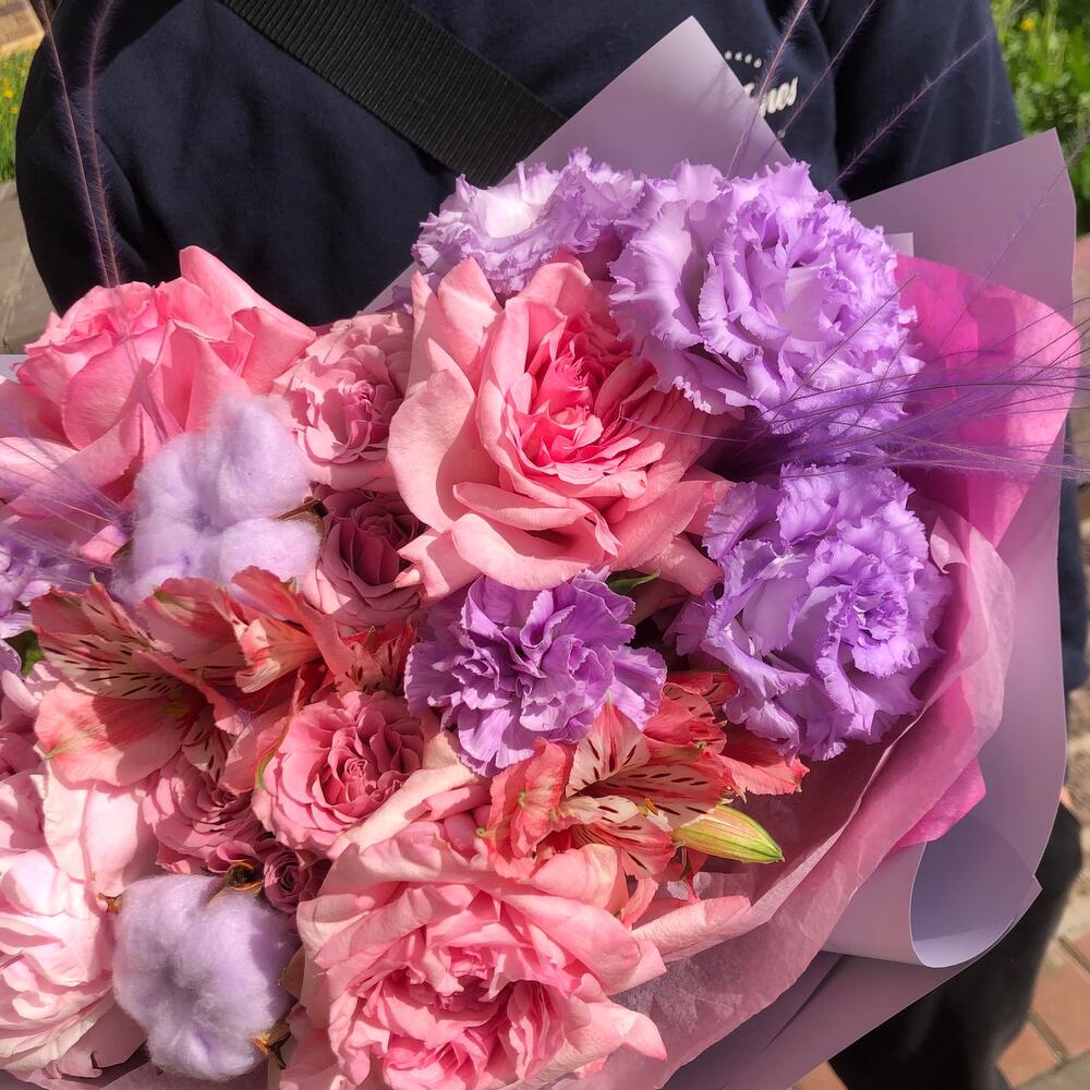 Гвоздики, Кустовые розы, Лизиантусы, Пионовидные розы, Розы