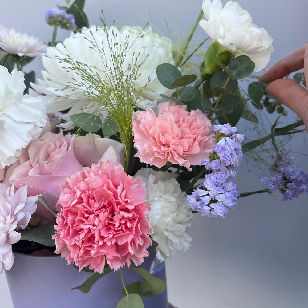 Коробка «Актрисе» (хризантемы, диантусы