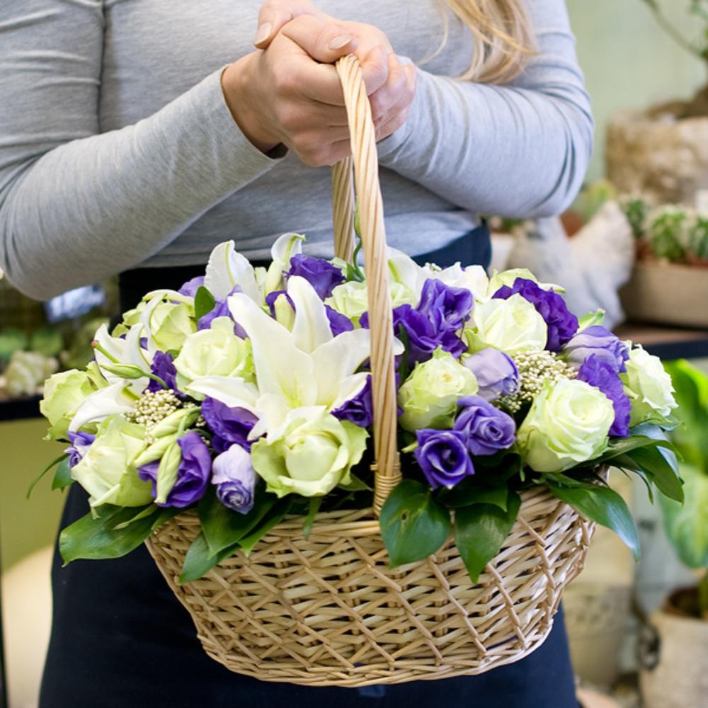 Корзина цветов “Лунный аметист”