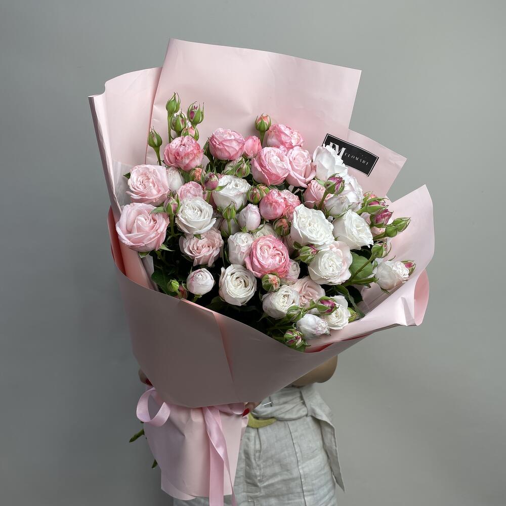 Альстромерии, Гвоздики, Кустовые розы, Лизиантусы, Розы, Хризантемы