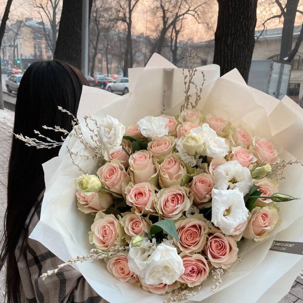 Кустовые розы, Лизиантусы, Розы, Сухоцвет