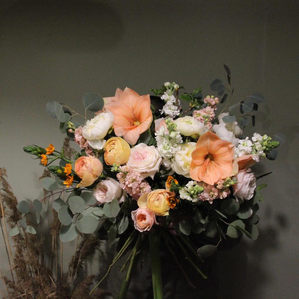 Персиковый – Букет с пионами, ранункулюсами и амариллисами