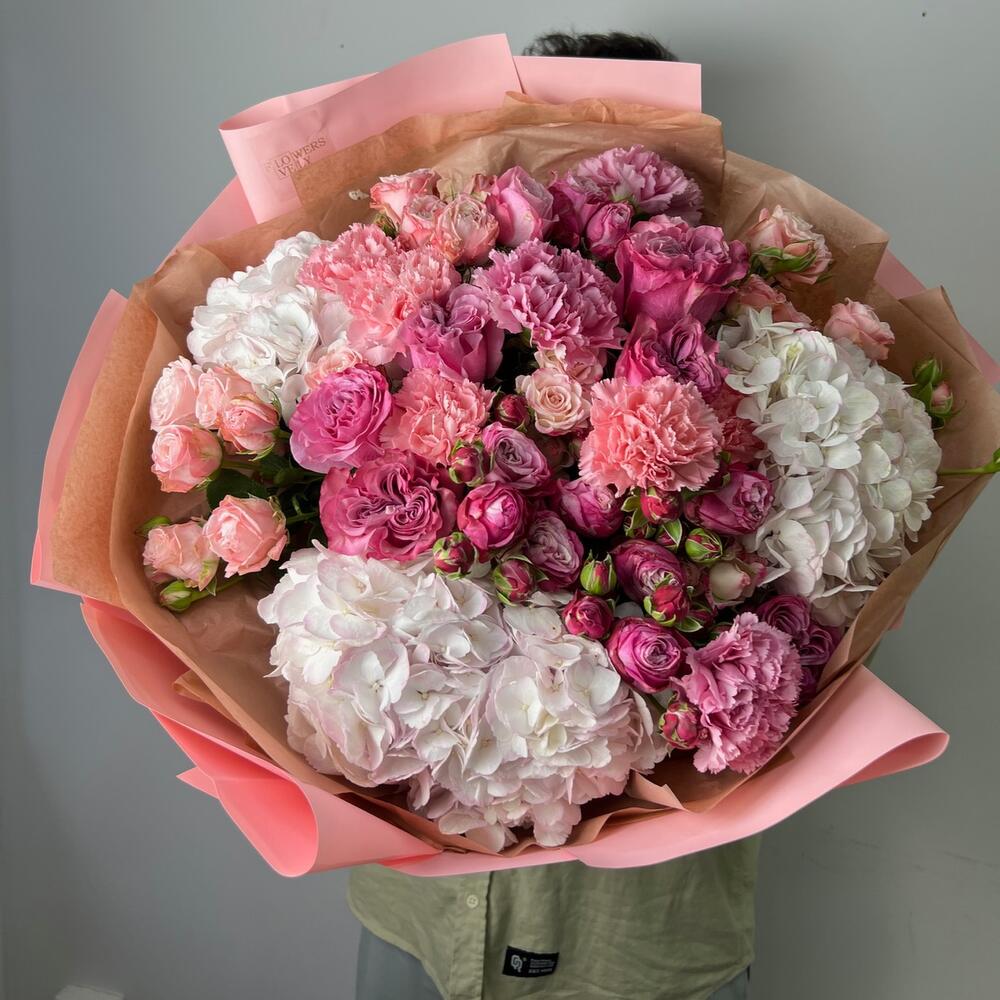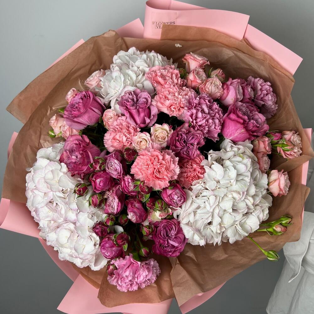 Гвоздики, Кустовые розы, Пионовидные розы, Розы