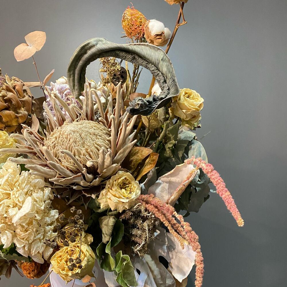 Кустовые розы, Лизиантусы, Розы, Сухоцвет
