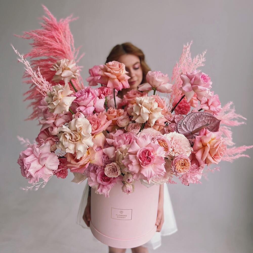 “В твоих глазах”: нежная шляпная коробка с французскими розами