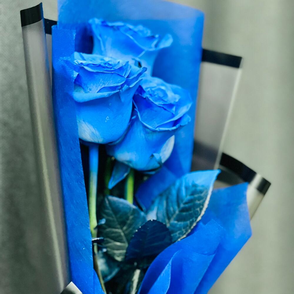 Синие розы в Матовой упаковке