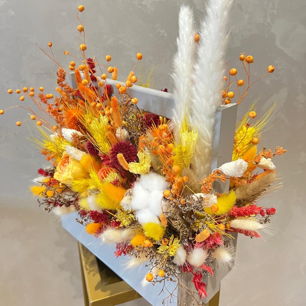 Необычный , не банальный , яркий сочный и не увядающий букет !)1-1,5 года будет радовать вас своими красками !)Композиция в красивый прозрачный упаковке , к каждой композиции в дополнение открытка , где можно написать пожелание , открытку можно выбрать при покупке написав в чат Сухоцветы и стабилизированные цветы – лучшая инвестиция в букет ,который не завянет!)