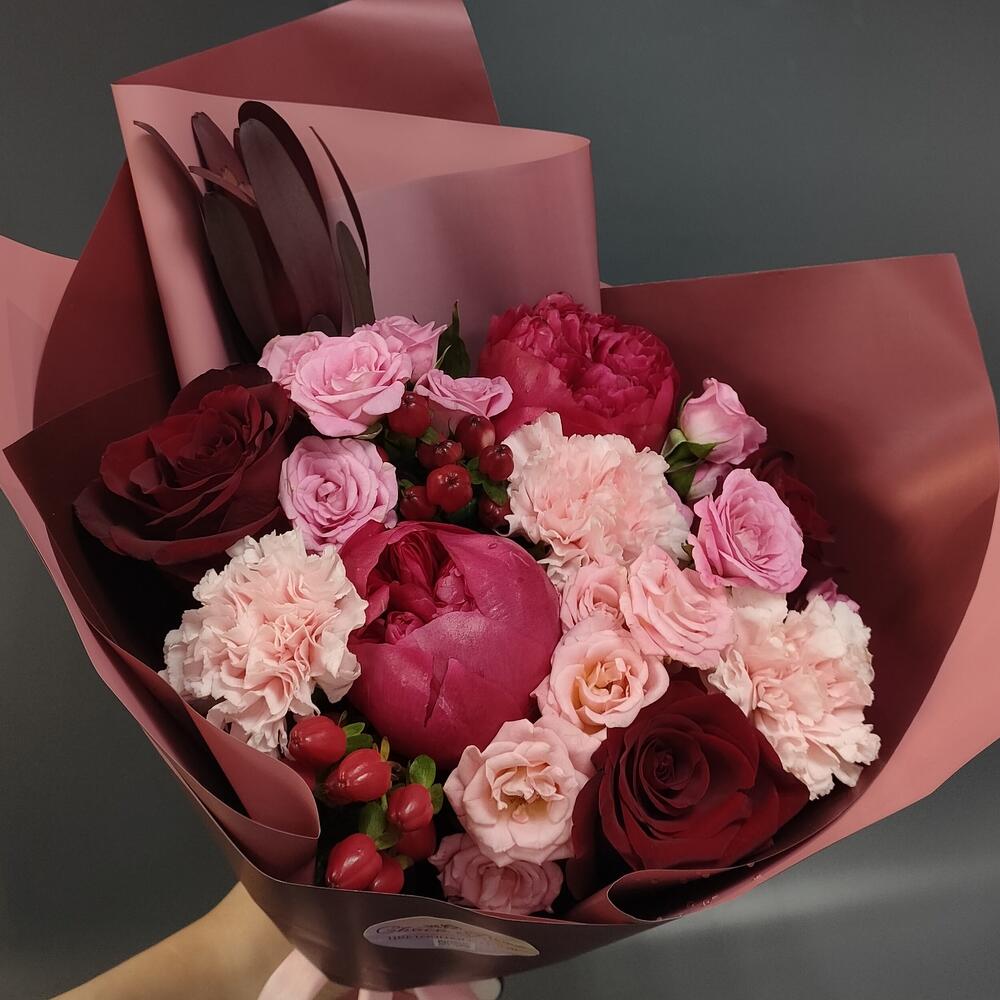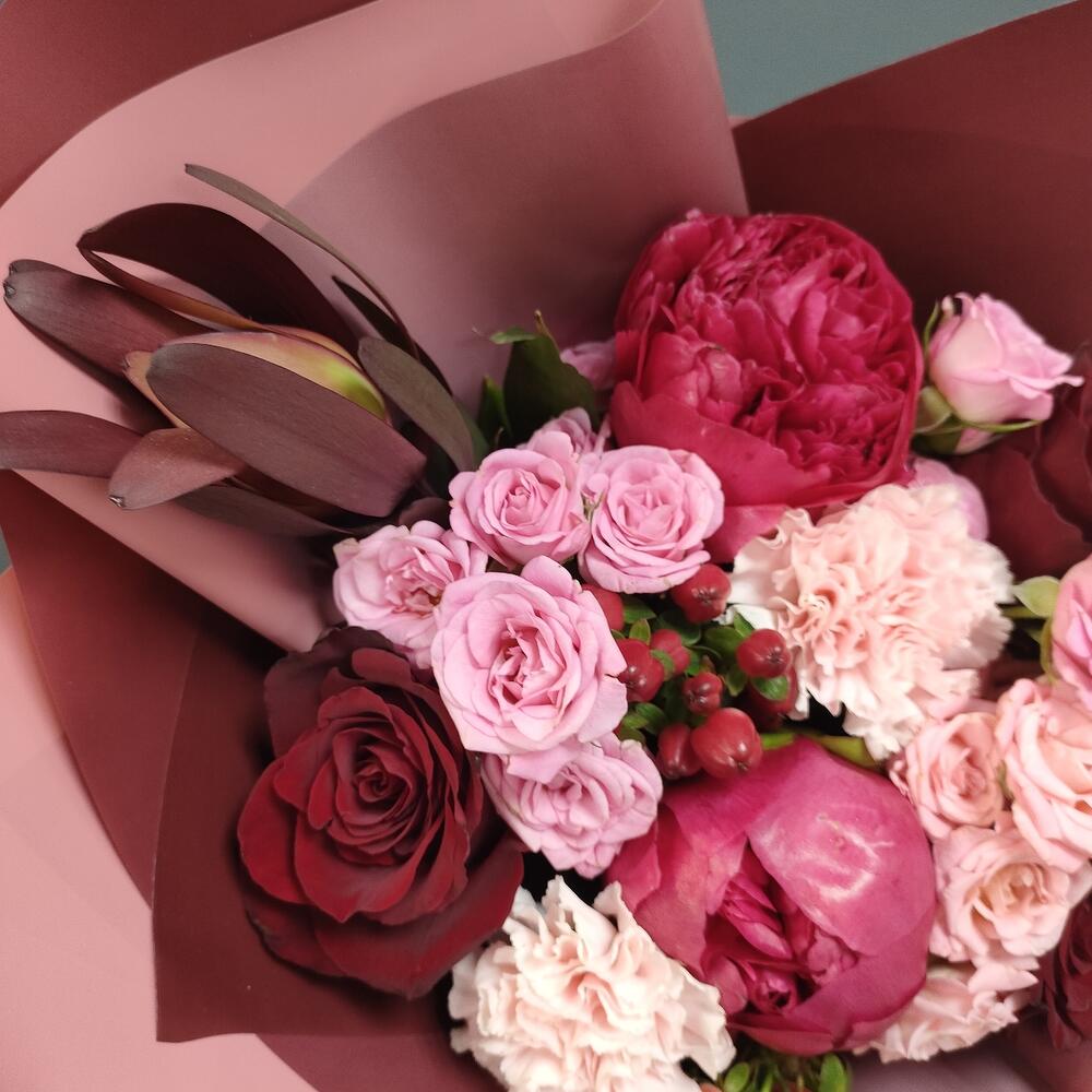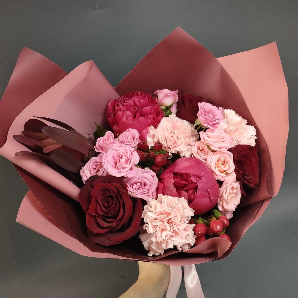 Гвоздики, Кустовые розы, Пионовидные розы, Розы