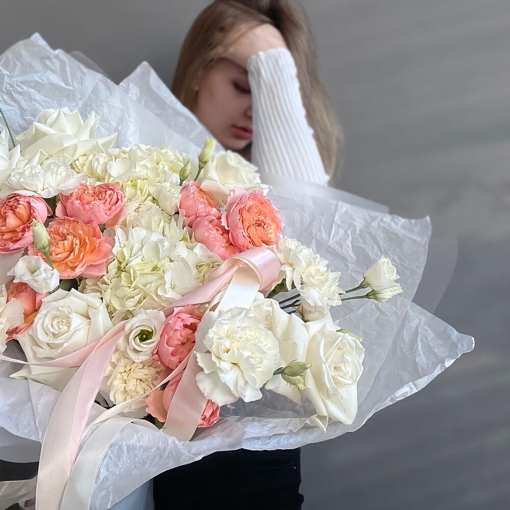 Категорий: Гвоздики, Гортензии, Лизиантусы, Пионовидные розы, Розы
